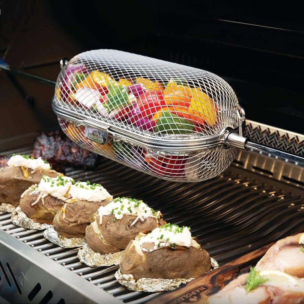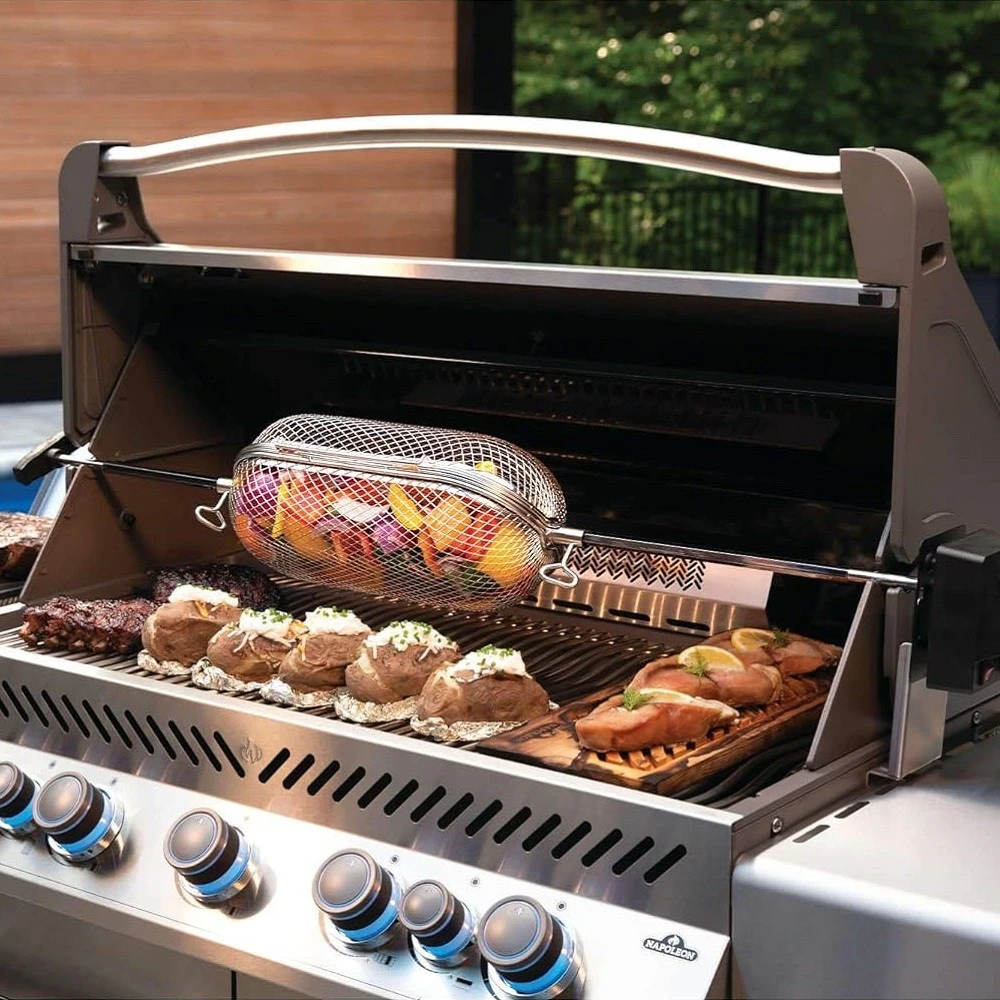Με το Napoleon Rotisserie Basket είναι εύκολο να φτιάξετε φτερούγες κοτόπουλου, τηγανιτές πατάτες, ψητά λαχανικά και πολλά άλλα στη σχάρα.