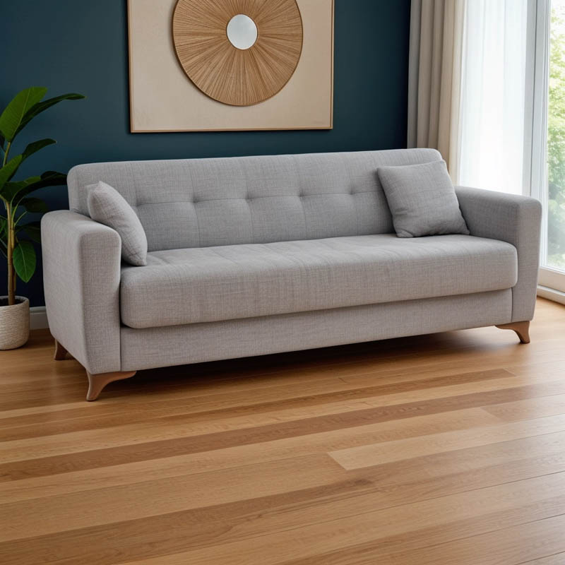 • Φέρει εύχρηστο μηχανισμό που με μία μόνο κίνηση ανασηκώνεται, μετατρέποντας τον καναπέ σε κρεβάτι και το αντίστροφο.