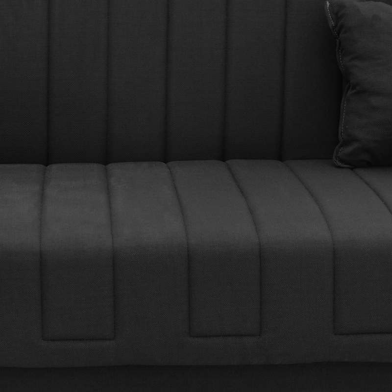 Καναπές-κρεβάτι με αποθηκευτικό χώρο τριθέσιος Romina pakoworld μαύρο ύφασμα 190x85x90εκ