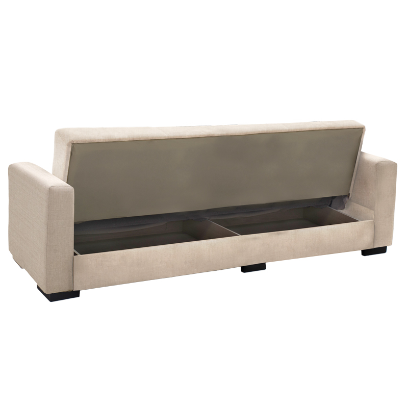 - Φέρει εύχρηστο μηχανισμό που με μία μόνο κίνηση ανασηκώνεται, μετατρέποντας τον καναπέ σε κρεβάτι και το αντίστροφο.