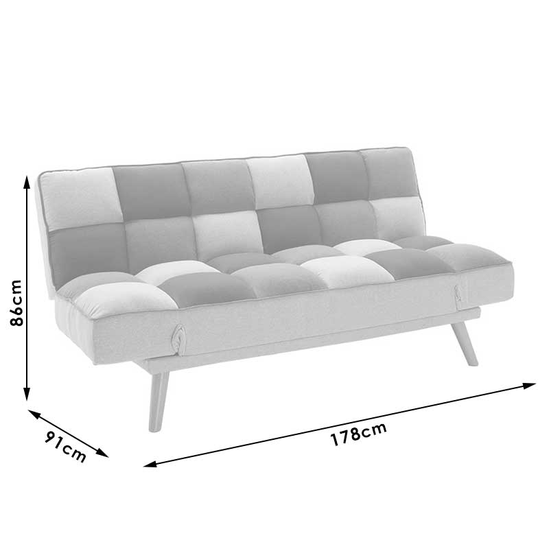- Φέρει εύχρηστο μεταλλικό μηχανισμό «click-clack» που με μία μόνο κίνηση μετατρέπει τον καναπέ σε κρεβάτι και το αντίστροφο.
