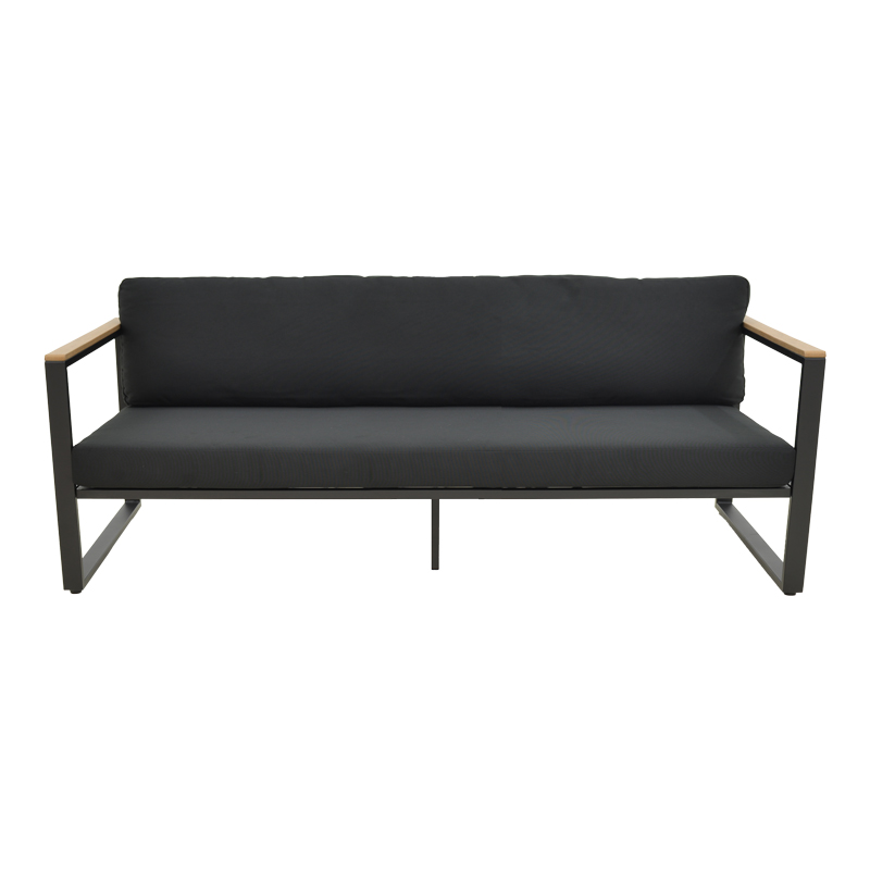 Αναβαθμίστε τον εξωτερικό ή εσωτερικό σας χώρο με τον 2θέσιο καναπέ Aurelio. Με στιβαρό ατσάλινο σκελετό και κομψές, μοντέρνες γραμμές, συνδυάζει στυλ, άνεση και μακροχρόνια αντοχή. Τα μπράτσα με επένδυση plywood προσθέτουν μια φυσική πινελιά, ενώ τα πλούσια μαξιλάρια εξασφαλίζουν μια premium εμπειρία καθίσματος.