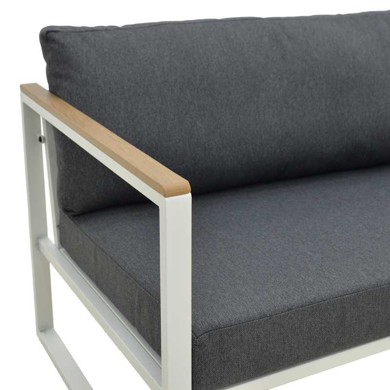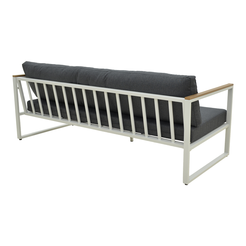 Αναβαθμίστε τον εξωτερικό ή εσωτερικό σας χώρο με τον 3θέσιο καναπέ Aurelio. Με στιβαρό ατσάλινο σκελετό και κομψές, μοντέρνες γραμμές, συνδυάζει στυλ, άνεση και μακροχρόνια αντοχή. Τα μπράτσα με επένδυση plywood προσθέτουν μια φυσική πινελιά, ενώ τα πλούσια μαξιλάρια εξασφαλίζουν μια premium εμπειρία καθίσματος.