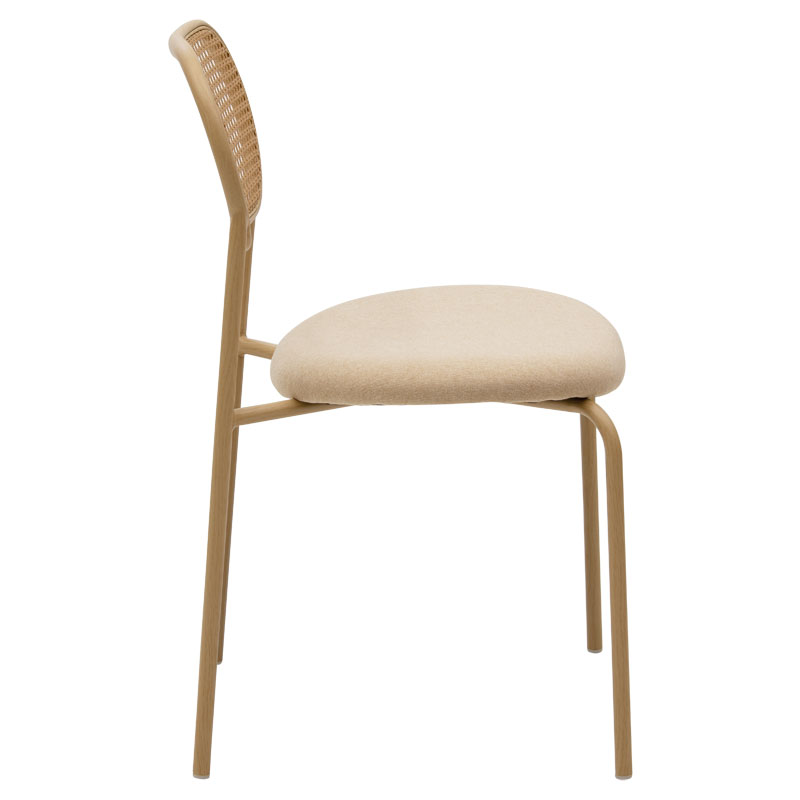 Καρέκλα James pakoworld στοιβαζόμενη pe rattan ύφασμα μπεζ-μέταλλο φυσικό