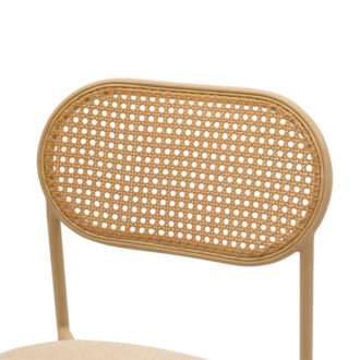 • Πλάτη καρέκλας από PE rattan. Το PE rattan είναι ένα είδος οικολογικού συνθετικού rattan, ανακυκλώσιμο και με μεγαλύτερη ανθεκτικότητα σε σχέση με τα άλλα είδη.