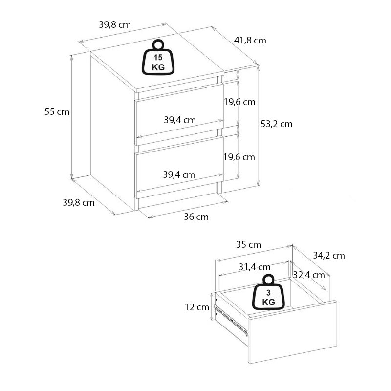 Κομοδίνο Breve Megapap χρώμα sapphire oak 39,8×41,8×55εκ.