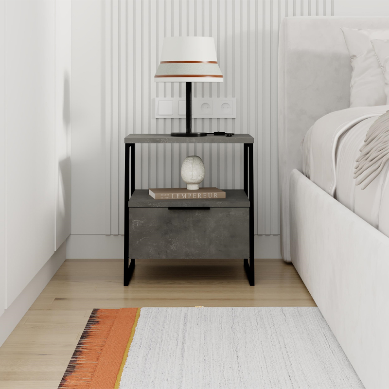 Κομοδίνο μελαμίνης Pal Megapap χρώμα γκρι ρετρό 45x40x50εκ.