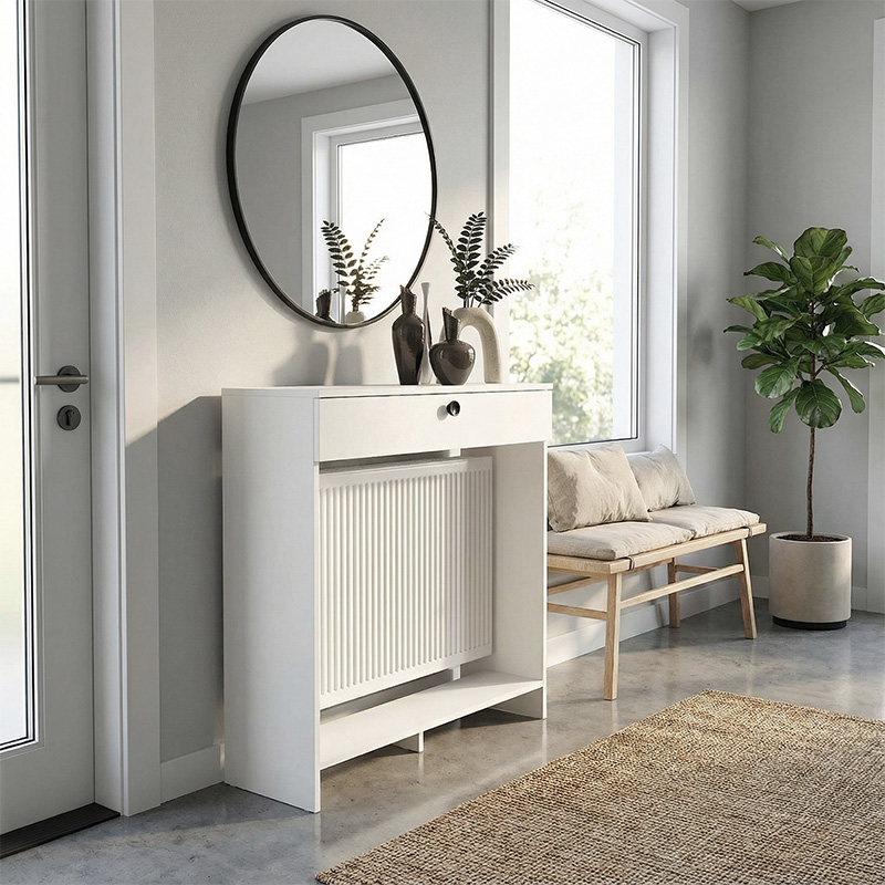 Το έπιπλο Opelya αποτελεί μια έξυπνη λύση που αναβαθμίζει αισθητικά τον χώρο χωρίς να εμποδίζει τη λειτουργία του σώματος θέρμανσης. Με λιτό και σύγχρονο σχεδιασμό, προσφέρει επιπλέον επιφάνεια οργάνωσης, διατηρώντας τον χώρο τακτοποιημένο και καλαίσθητο.