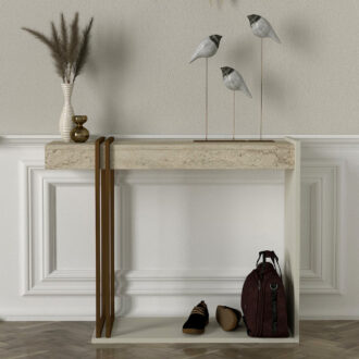 Κονσόλα Desca Megapap χρώμα travertine – sandstone – χρυσό 91,8×29,6×74,2εκ.