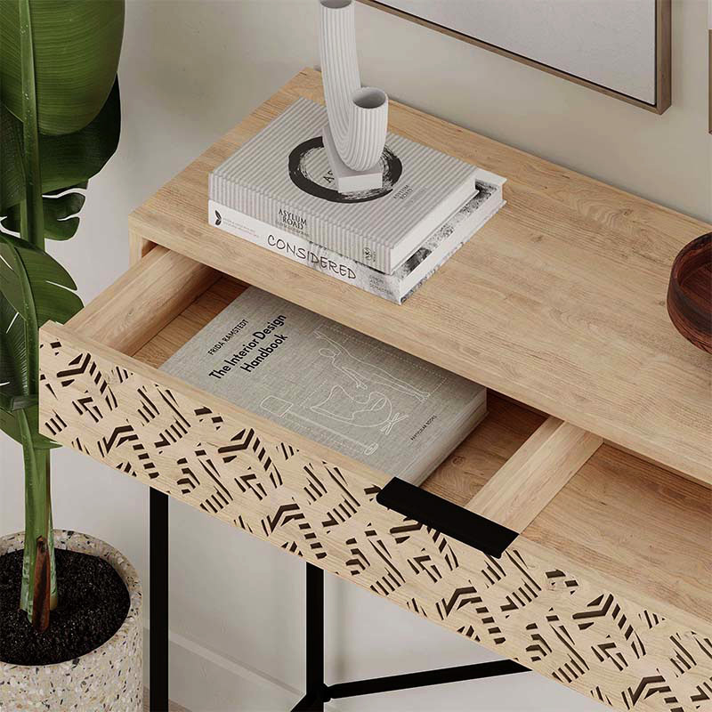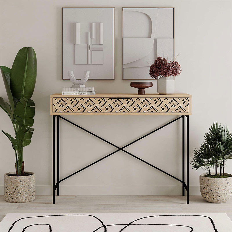 Κονσόλα Heaton Megapap μεταλλική – μελαμίνης χρώμα sapphire oak 110×35,6×90εκ.