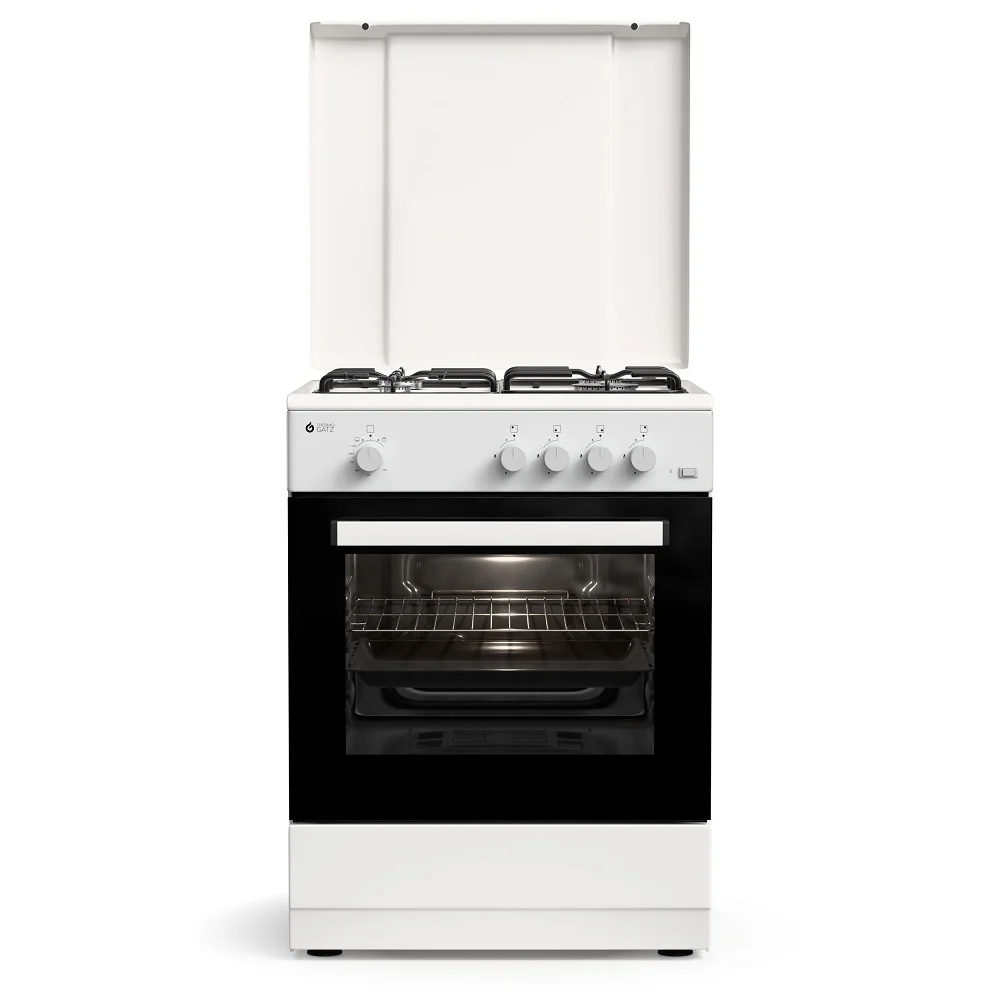Κουζίνα αερίου TGS 161 WH | φούρνος αερίου | 4 εστίες αερίου είναι ιδανική για λειτουργία με υγραέριο LPG G30/G31 ή φυσικό αέριο NG G20, προσφέροντας δύο τρόπους ψησίματος για μέγιστη ευελιξία.