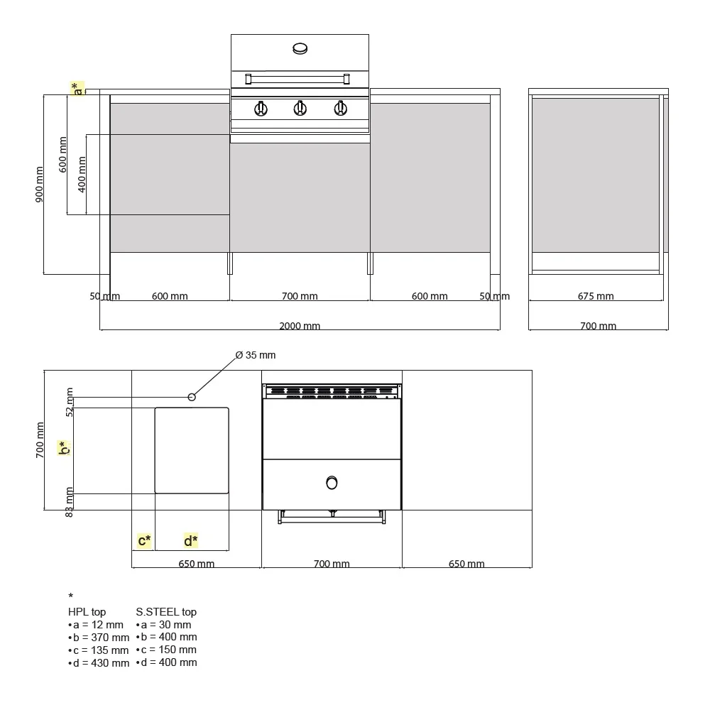 Αν το μοντέλο της STEEL εξωτερικής κουζίνας GEA LATEMAR είναι μικρότερο ή μεγαλύτερο σε διαστάσεις για τον χώρο σας, υπάρχει δυνατότητα προσθήκης ή αφαίρεσης κομματιών ώστε να δημιουργήσετε την TAYLOR made OUTDOOR kitchen που ικανοποιεί όλες τις ανάγκες σας!