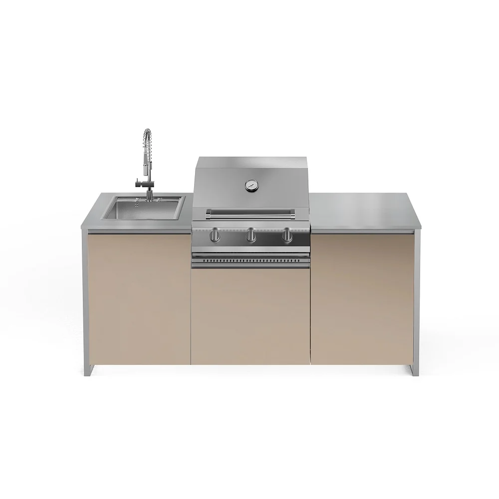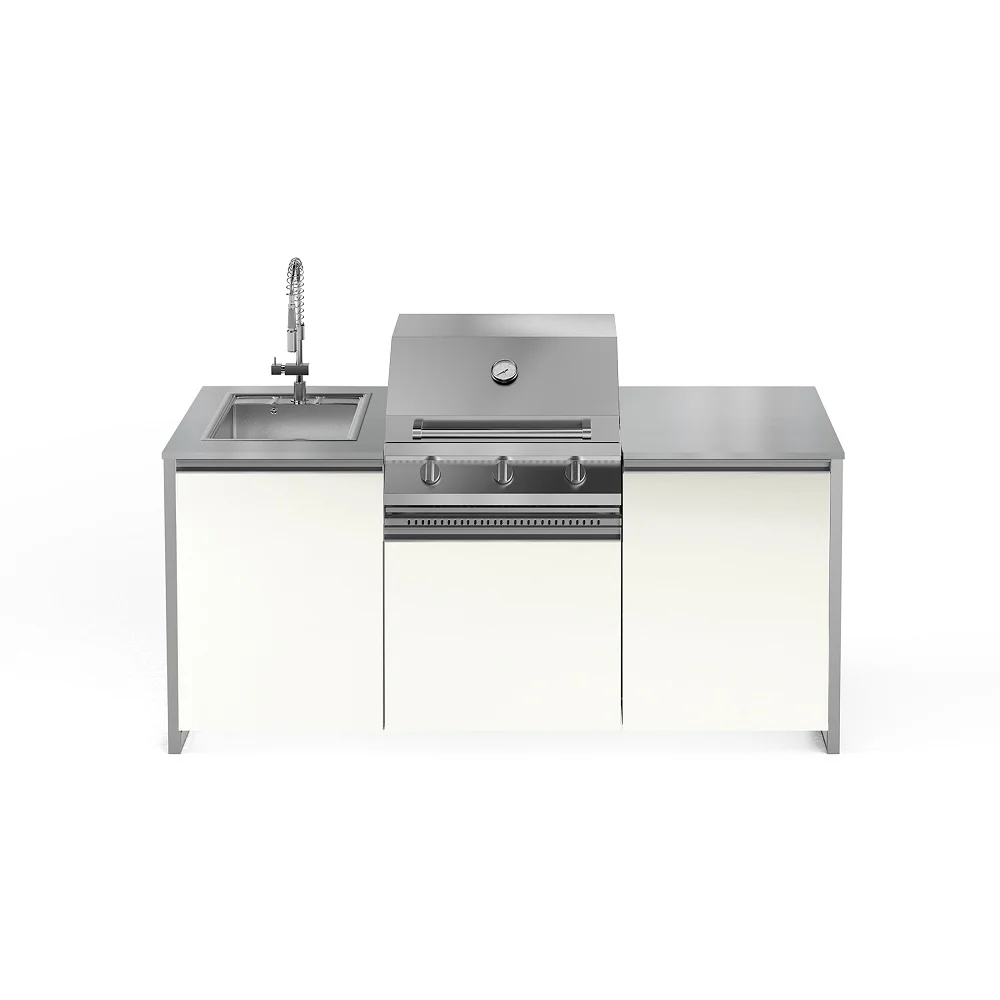 Πάγκος, εξωτερικές επιφάνειες και ψησταριά κατασκευασμένα από ανοξείδωτο χάλυβα τύπου AISI316-marine grade ο οποίος είναι ανθεκτικός σε θαλάσσιο ή παραθαλάσσιο περιβάλλον!