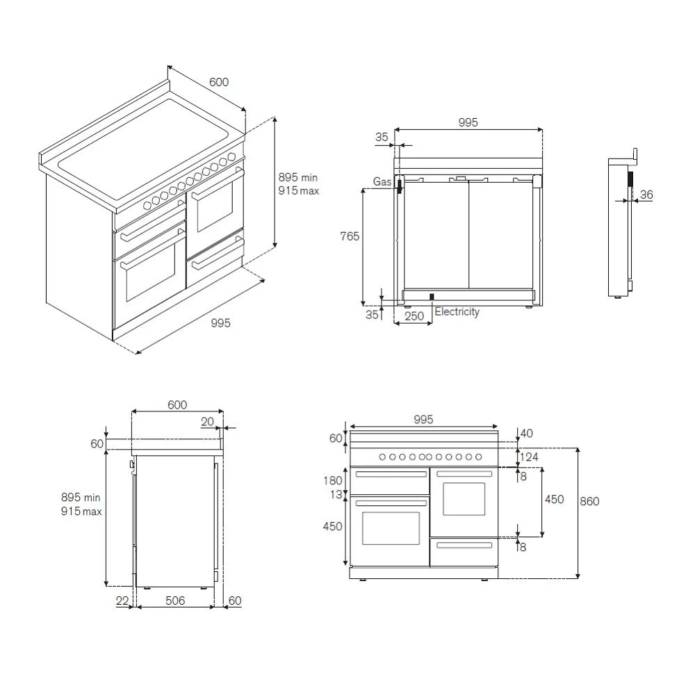 • Διαστάσεις συσκευής (ΠxΥxΒ) 995 x 895-915 x 600