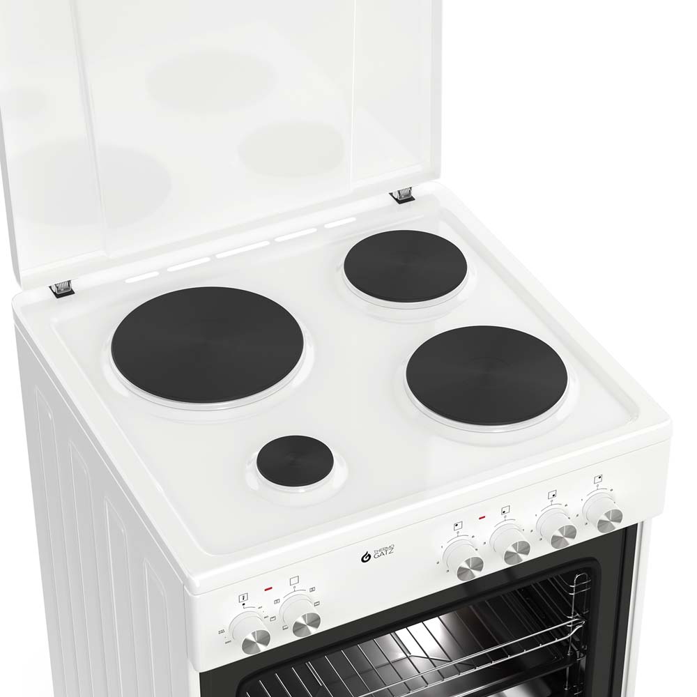 Κουζίνα ηλεκτρική TGS E120 WH TURBO | φούρνος με αέρα ηλεκτρικός | 4 εστίες ηλεκτρικές | γκριλ ηλεκτρικό. Ισχύς, Ευκολία καθώς και Στυλ σε Κάθε Μαγείρεμα!