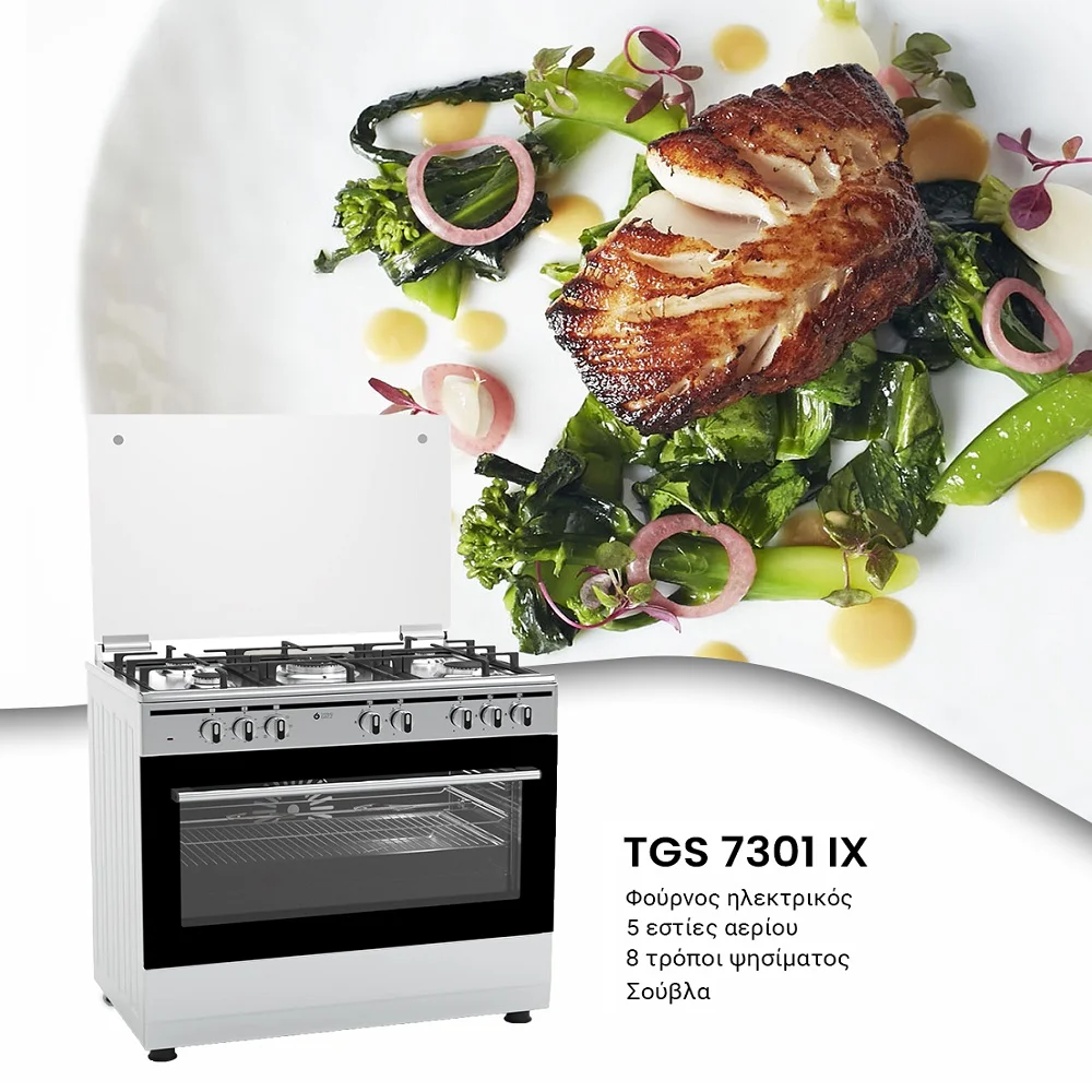 Κουζίνα μικτή TGS 7301 IX TURBO με αέρα | φούρνος ηλεκτρικός | 5 εστίες αερίου – Απόδοση, Όγκος καθώς και Ελευθερία στην Κουζίνα!