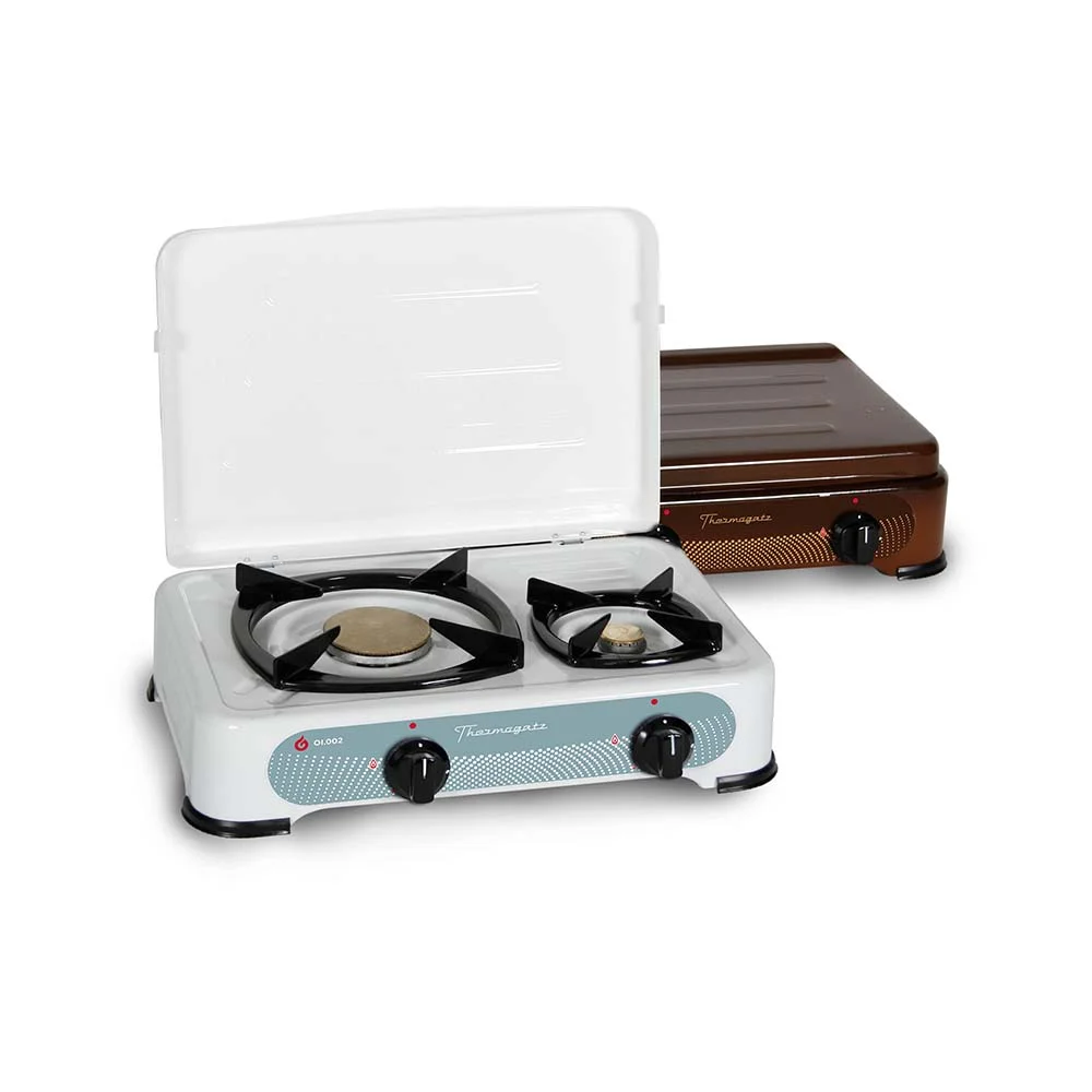 Κουζινάκι υγραερίου με 1 μεγάλη εστία και 1 μικρή ΟΙ.002 λευκό χαμηλής πίεσης, Ελληνικής κατασκευής, Ιδανικό για Ευελιξία & Απόδοση!.