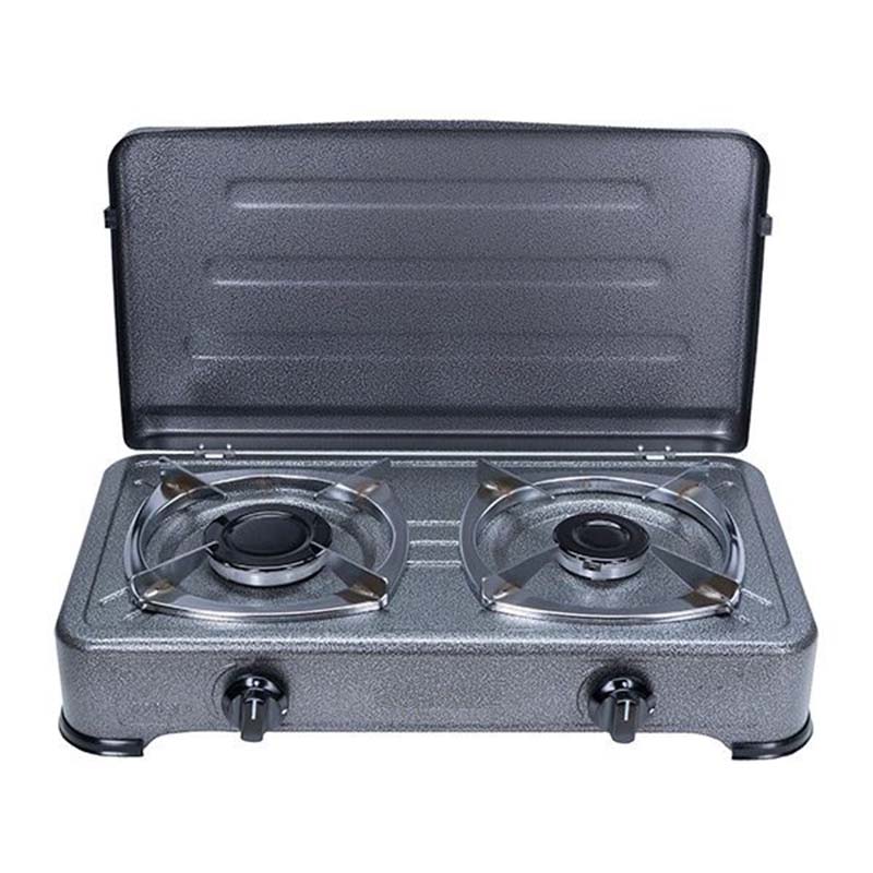 Αυτό το κουζινάκι υγραερίου γκρι χρώματος διαθέτει 2 εστίες υγραερίου 1 μεγάλη εστία για το μαγείρεμα σας και 1 μεσαία.