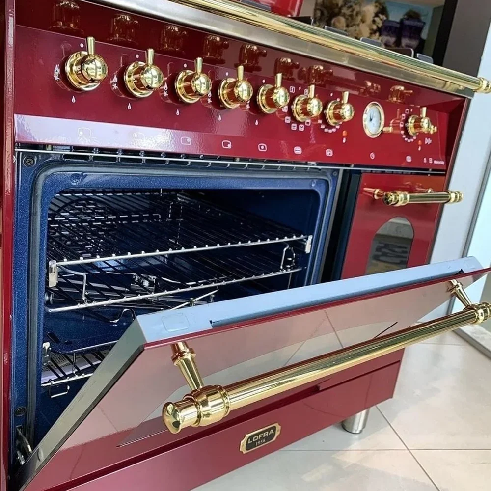 90×60εκ. – 5 εστίες αερίου με διασπορείς 3ης γενιάς – 2 φούρνοι ηλεκτρικοί – Grill Ηλεκτρικό – Σούβλα – Αναλογικό ρολόι χρονοειδοποιητής.