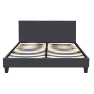 Κρεβάτι Flat Megapap από τεχνόδερμα χρώμα μαύρο ματ 160×200εκ.