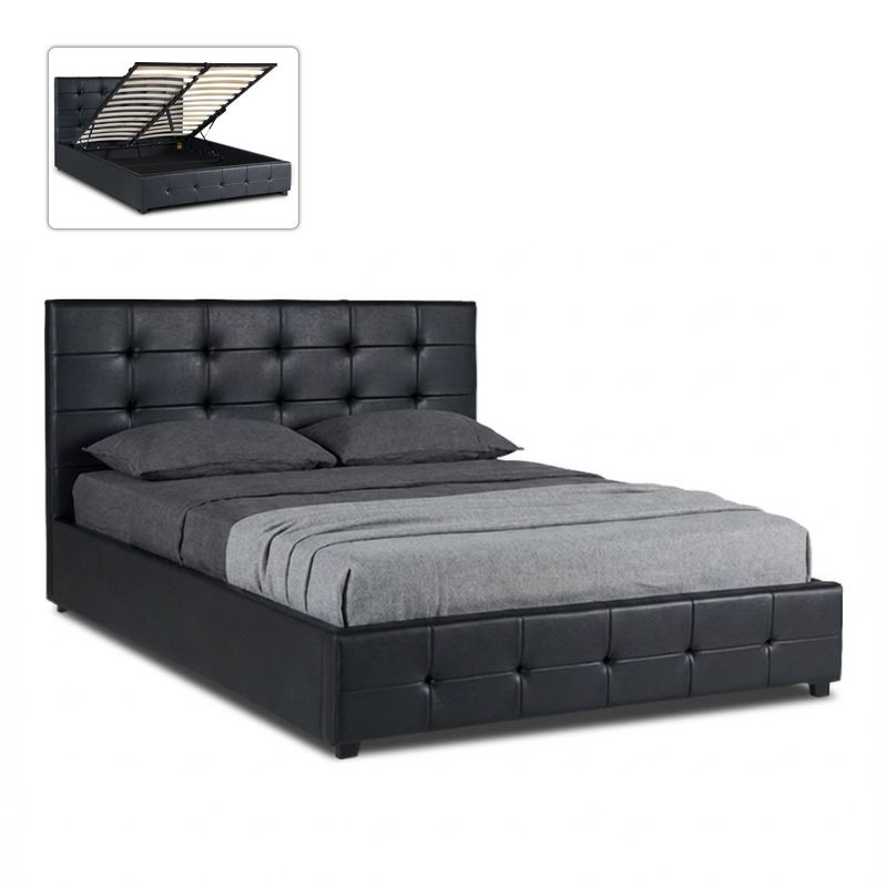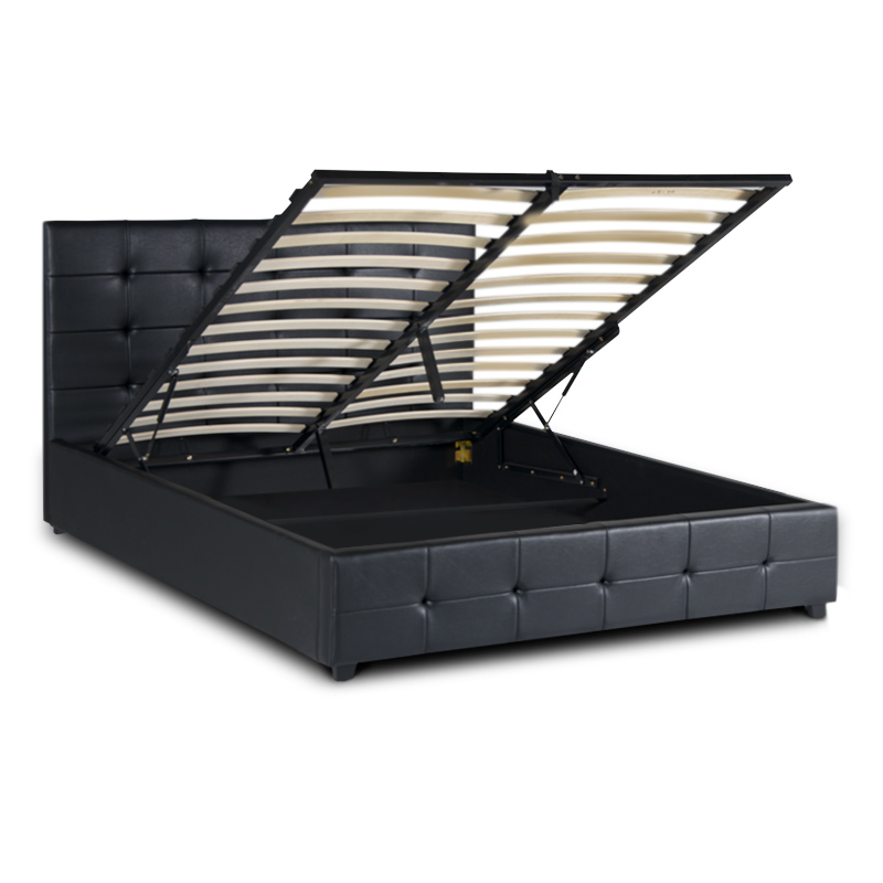 Κρεβάτι Iro Megapap από τεχνόδερμα με αποθηκευτικό χώρο χρώμα μαύρο 160×200εκ.