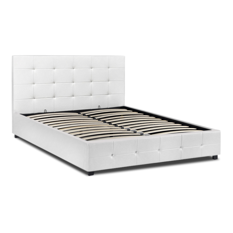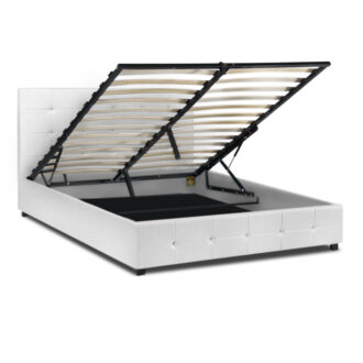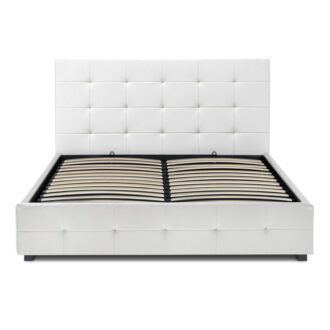 Κρεβάτι Iro Megapap από τεχνόδερμα με αποθηκευτικό χώρο χρώμα λευκό 160×200εκ.