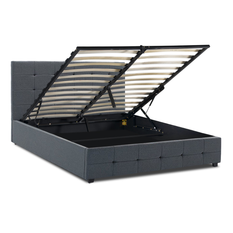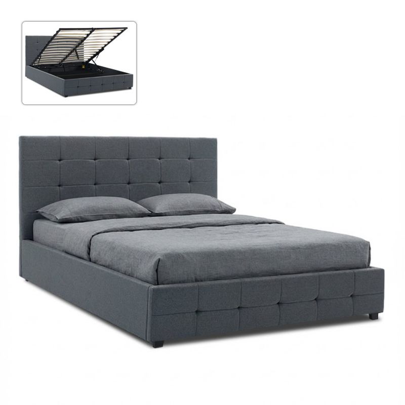 Κρεβάτι Iro Megapap υφασμάτινο με αποθηκευτικό χώρο χρώμα ανθρακί 160×200εκ.