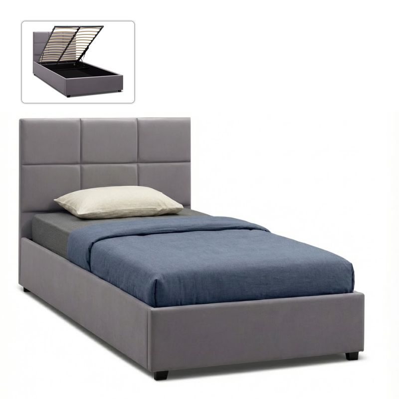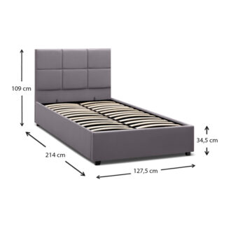 Κρεβάτι Kingston Megapap βελούδινο με αποθηκευτικό χώρο χρώμα γκρι 120×200εκ.