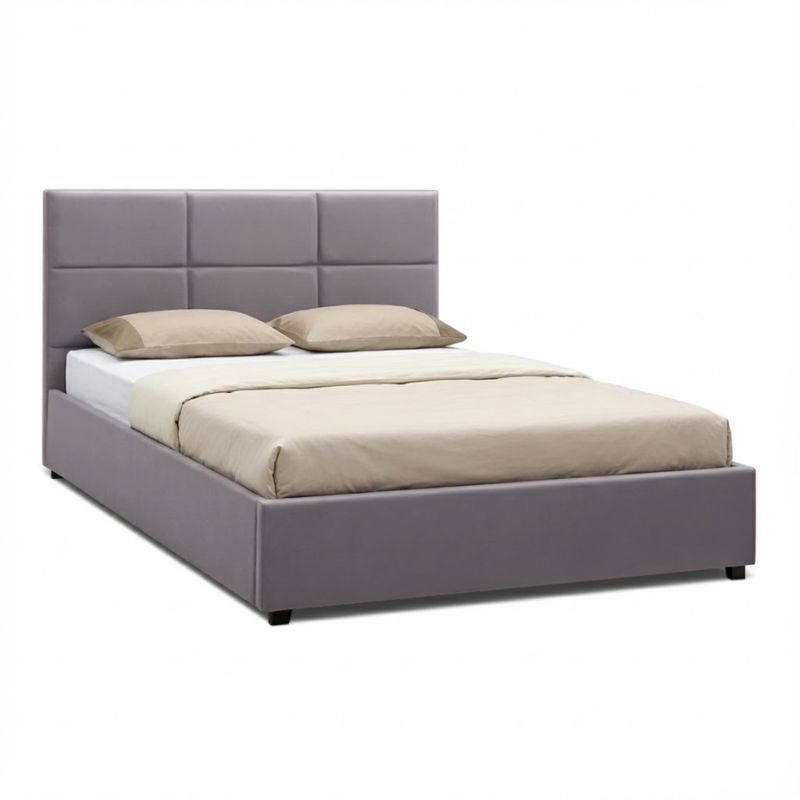 Κρεβάτι Kingston Megapap βελούδινο χρώμα γκρι 150×200εκ.