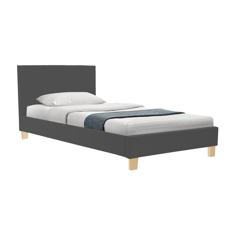 Κρεβάτι Nevil pakoworld ύφασμα ανθρακί με ξύλινο πόδι σε φυσική απόχρωση 90×190εκ
