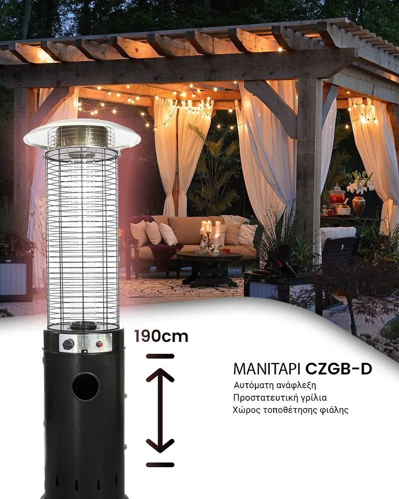 Το Μανιτάρι Υγραερίου CZGB-D1-11 συνδυάζει τεχνολογία, κομψότητα και αποτελεσματικότητα σε ένα συμπαγές, στιβαρό καθώς και ασφαλές θερμαντικό μέσο.
