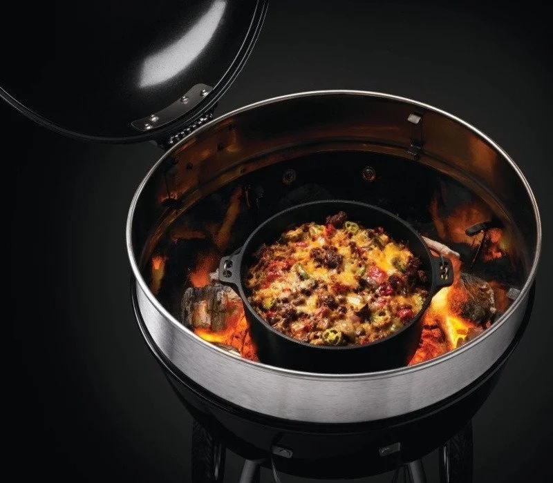 Καπάκι με διπλή χρήση, καθώς μπορείς να το μετατρέψεις σε επιφάνεια ψησίματος με πόδια όταν το γυρίσεις ανάποδα.
