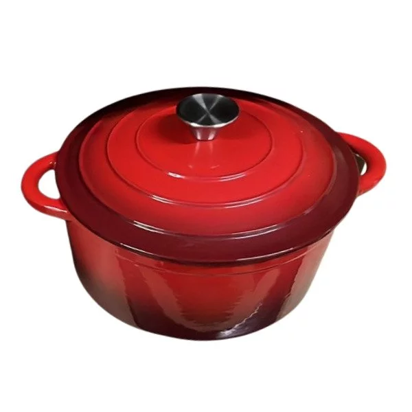 Κατσαρόλα από Χυτοσίδηρο (Μαντέμι) και εξωτερική επίστρωση εμαγιέ σε κόκκινο χρώμα.