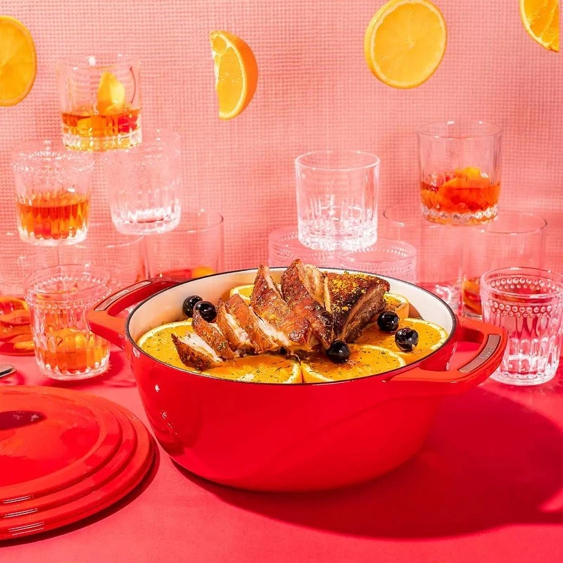 Ακόμα, χρησιμοποιείς την κατσαρόλα στο ψυγείο για συντήρηση ή μαρινάρισμα, διότι διαθέτει non-reactive πορσελάνινη επίστρωση που δεν απορροφά γεύσεις ή χρώματα.