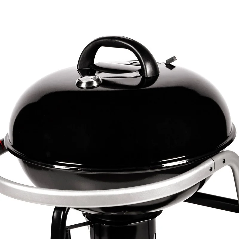 Με Σύστημα ελέγχου αέρα καύσης στη βάση και καπάκι με μεγάλο ύψος, θερμόμετρο, διακόπτη ελέγχου αέρα ψησίματος και μεντεσέ στήριξης.