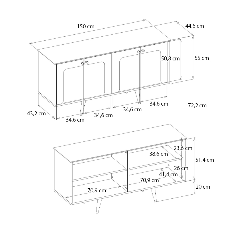Μπουφές Sevilla Megapap χρώμα sandstone – travertine 150×44,6×72,2εκ.