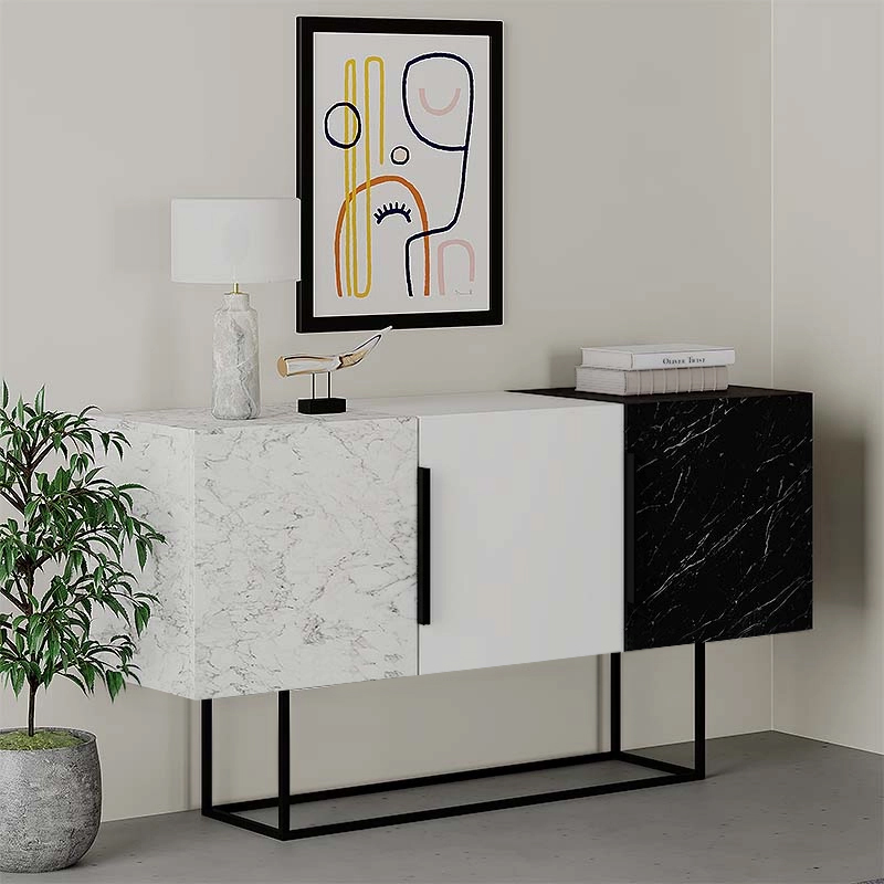 Μπουφές μελαμίνης Tontini Megapap χρώμα λευκό – μαύρο εφέ μαρμάρου 150x42x79,5εκ.