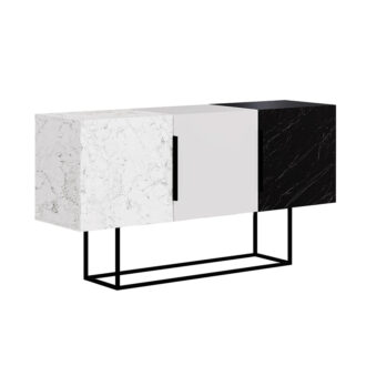 Μπουφές Tontini Megapap χρώμα λευκό – μαύρο εφέ μαρμάρου 150x42x79,5εκ.