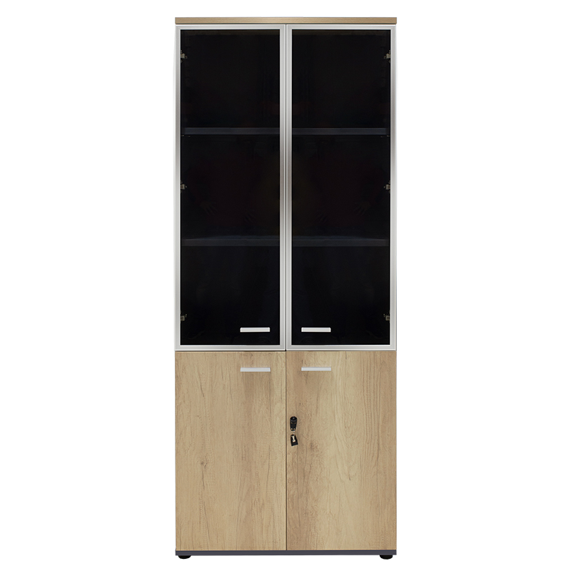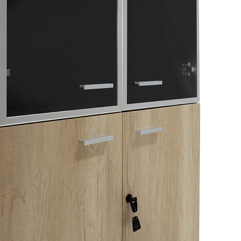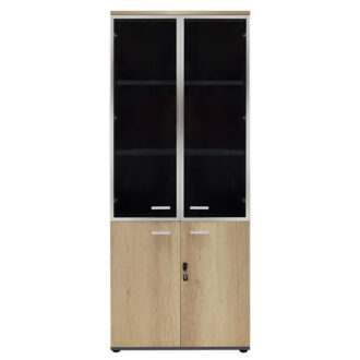Ντουλάπα γραφείου με γυάλινες πόρτες Lotus χρώμα φυσικό – ανθρακί 80x40x200εκ