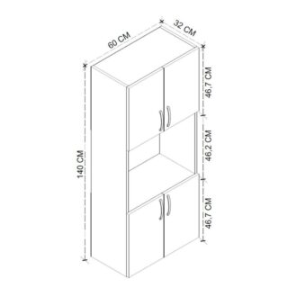• Διαστάσεις: Μήκος 60 x Βάθος 32 x Ύψος 140 εκ.