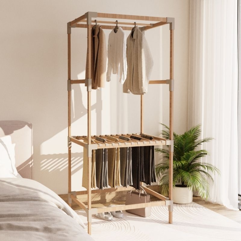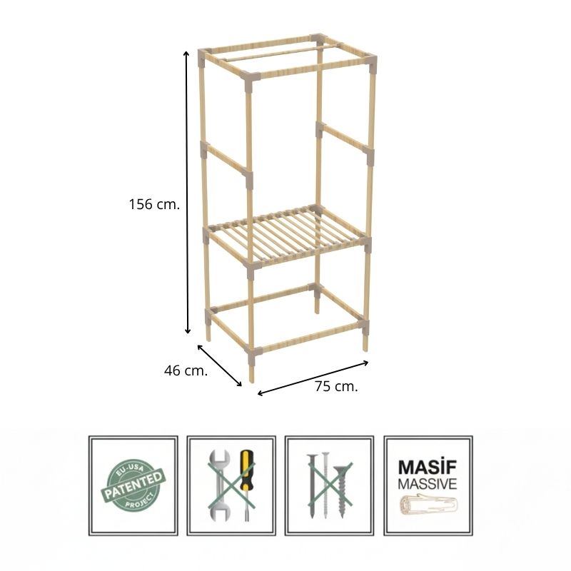 Ντουλάπα ρούχων ανοιχτή – Έπιπλο εισόδου ξύλινο – πλαστικό χρώμα φυσικό – μπεζ 75x46x156εκ.