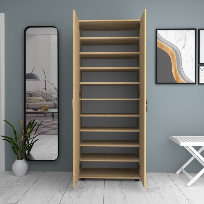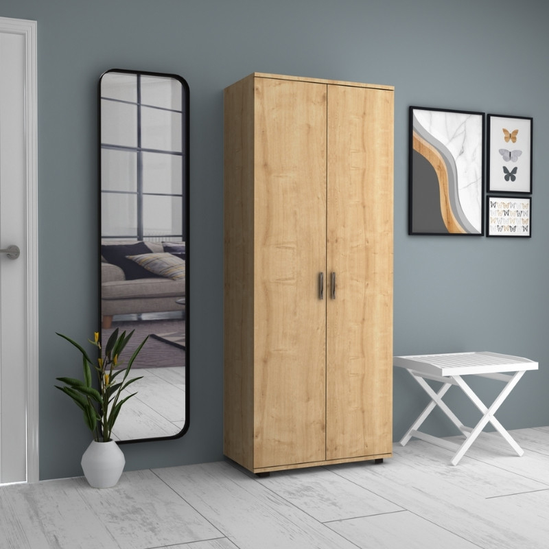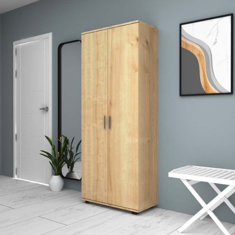 Ντουλάπα ρούχων – παπουτσοθήκη Eric Megapap δίφυλλη χρώμα φυσικό οξιάς 76x36x187εκ.
