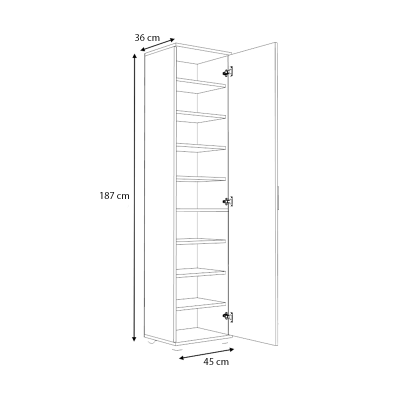Ντουλάπα ρούχων – παπουτσοθήκη Visla Megapap μονόφυλλη από μελαμίνη με καθρέπτη χρώμα λευκό 45x36x187εκ.