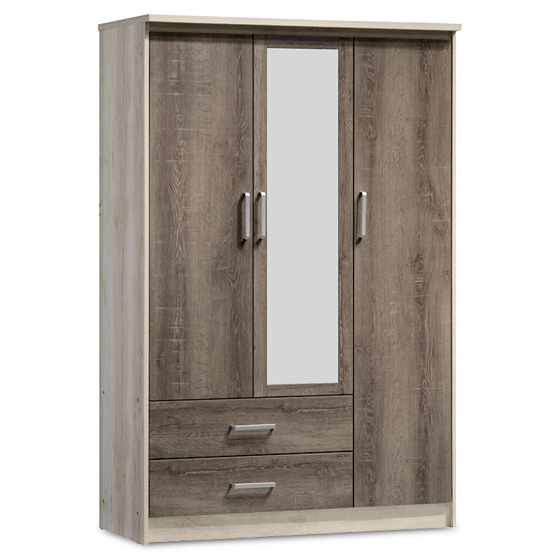 Τρίφυλλη ντουλάπα Olympus με καθρέφτη και δύο συρτάρια σε χρώμα castillo – toro