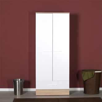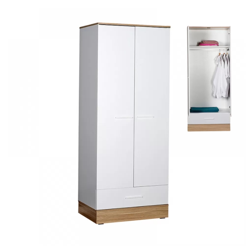 Ντουλάπα ρούχων Base Megapap δίφυλλη από μελαμίνη σε χρώμα λευκό – sonoma 80x52x198εκ. Ιδανική για τον οικακό σας χώρο.