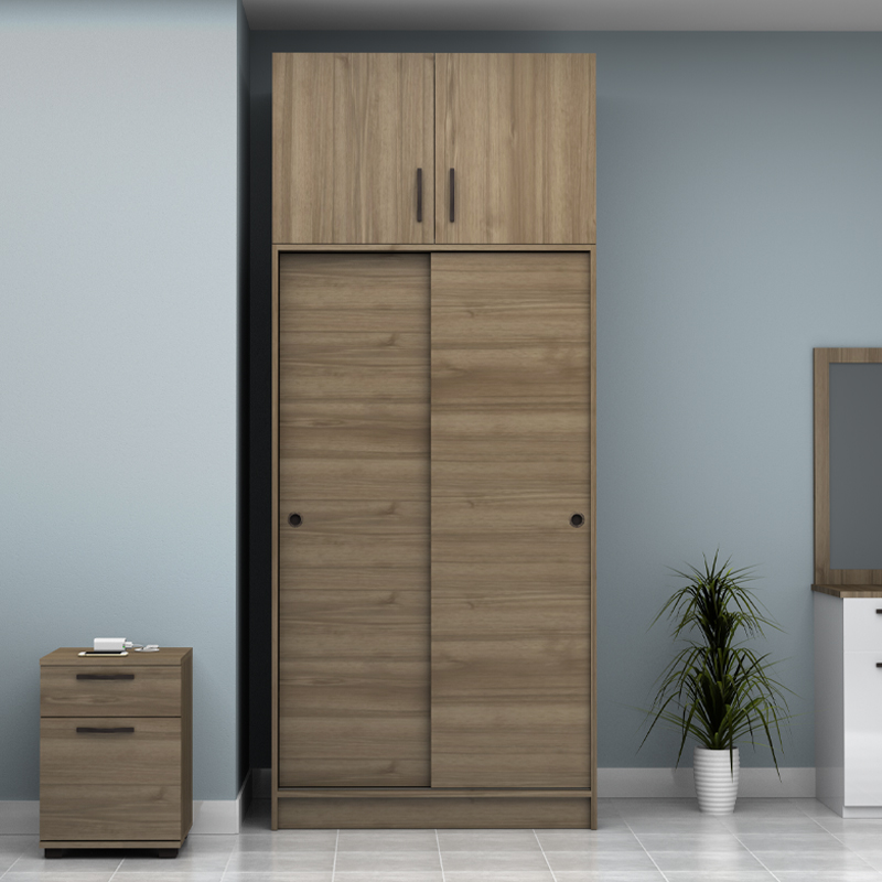 Ντουλάπα ρούχων Regio Megapap δίφυλλη συρόμενη με πατάρι χρώμα καρυδί 100x60x240εκ.