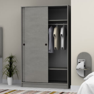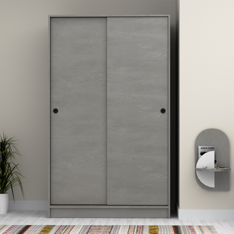 Ντουλάπα ρούχων Regio Megapap δίφυλλη συρόμενη χρώμα γκρι σκυροδέματος 120x60x200εκ.