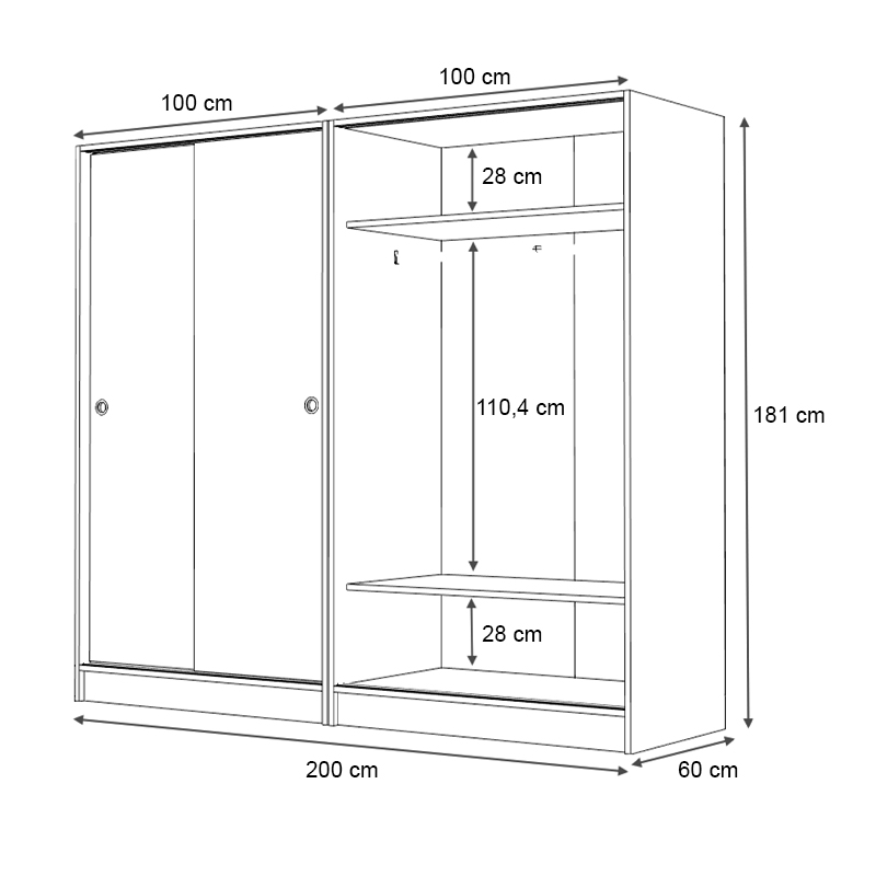 Η Regio είναι μια μοντέρνα ντουλάπα με συρόμενες πόρτες, σχεδιασμένη για να προσφέρει μέγιστη εργονομία σε περιορισμένους χώρους. Διαθέτει ευρύχωρους εσωτερικούς χώρους, ιδανικούς για ρούχα, αξεσουάρ και όλα όσα χρειάζεστε τακτοποιημένα και οργανωμένα.