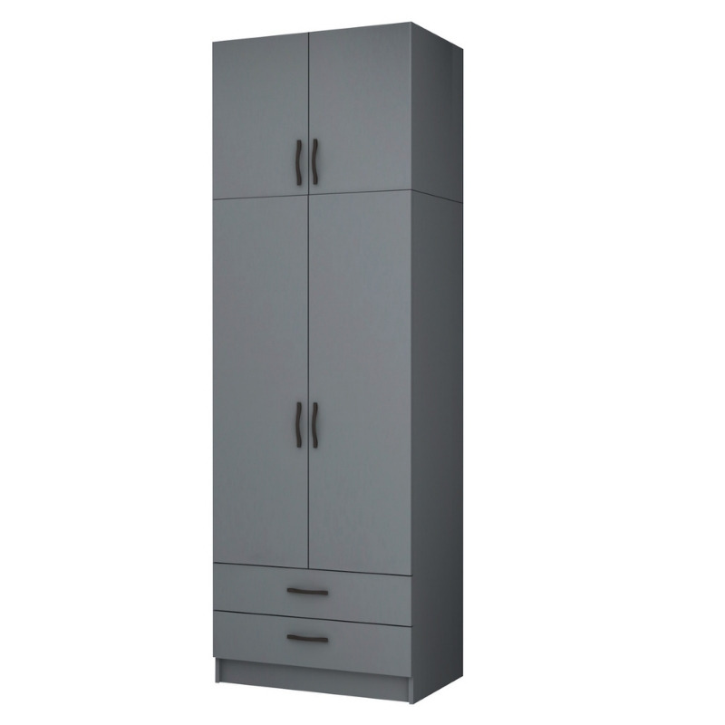Ντουλάπα ρούχων Ricardo Megapap δίφυλλη με πατάρι και συρτάρια χρώμα ανθρακί 80×51,8×240εκ.