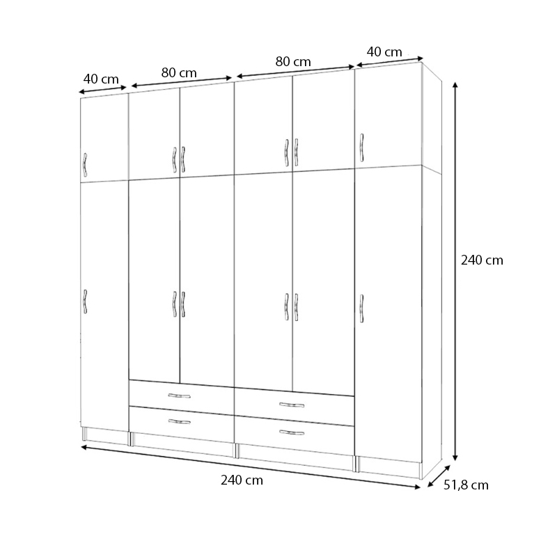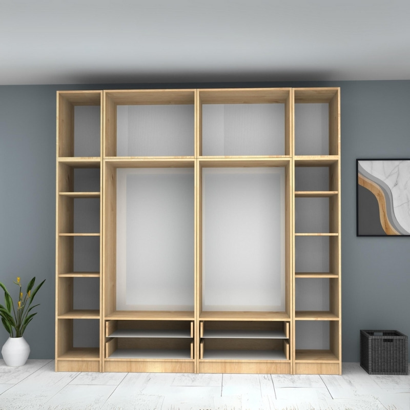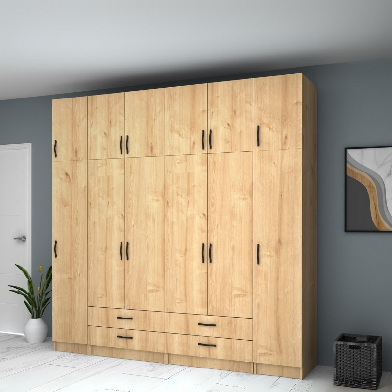 Ντουλάπα ρούχων Ricardo Megapap εξάφυλλη με πατάρι και συρτάρια χρώμα φυσικό οξιάς 240×51,8×240εκ.